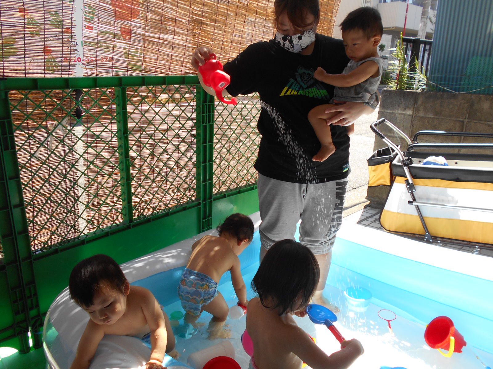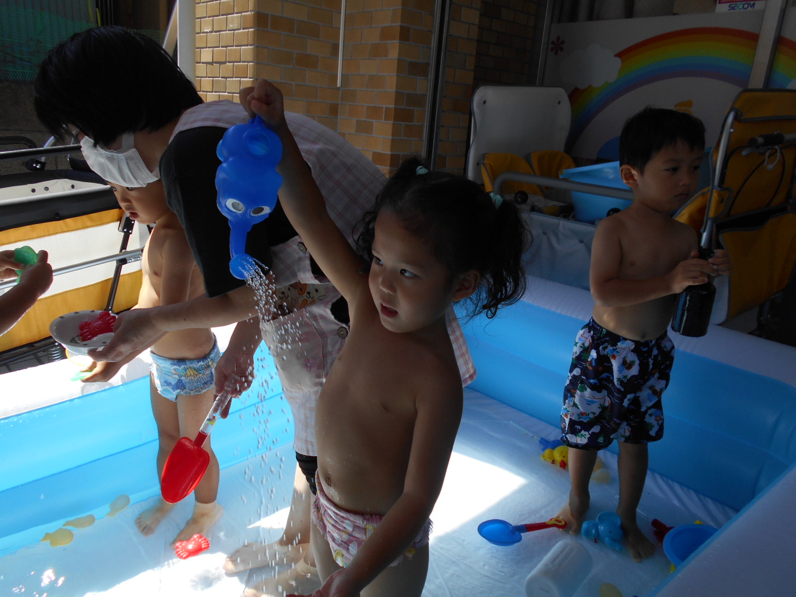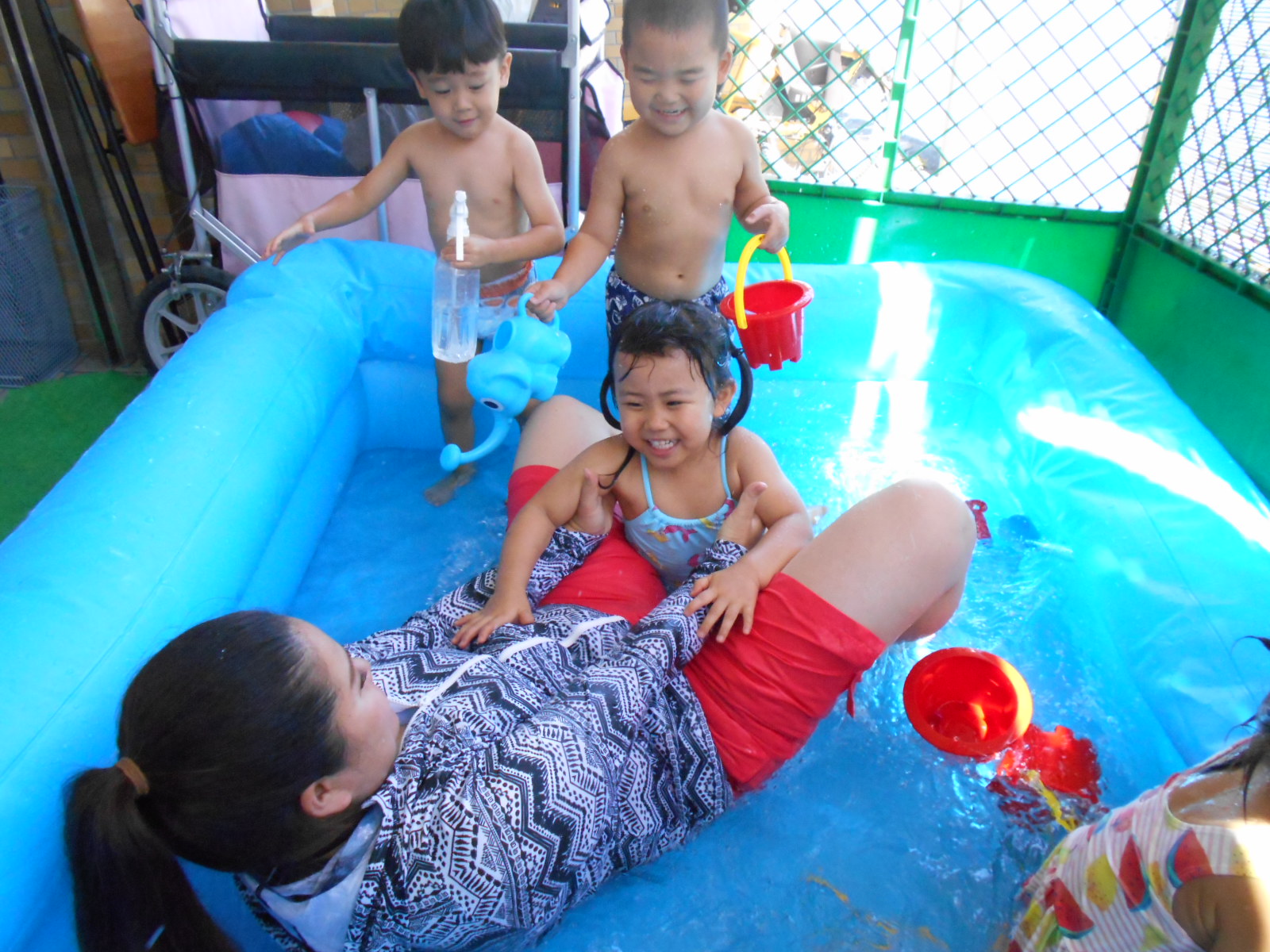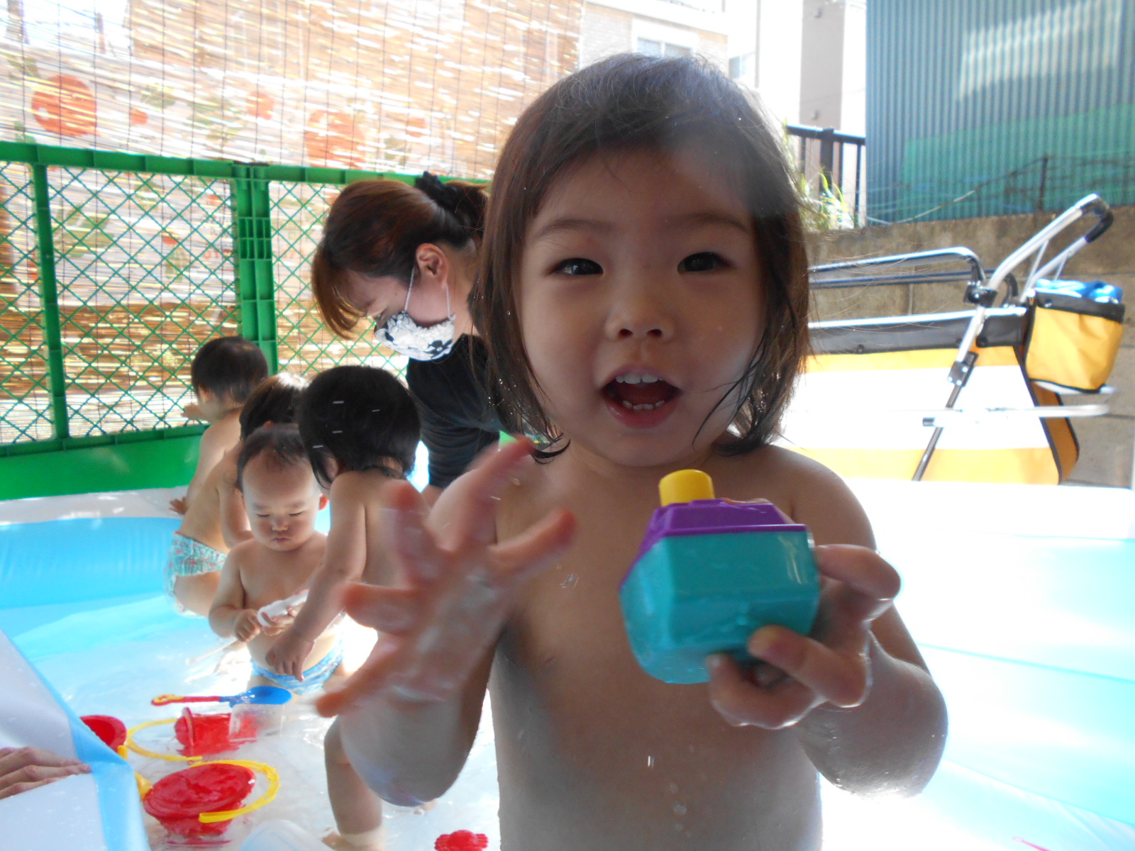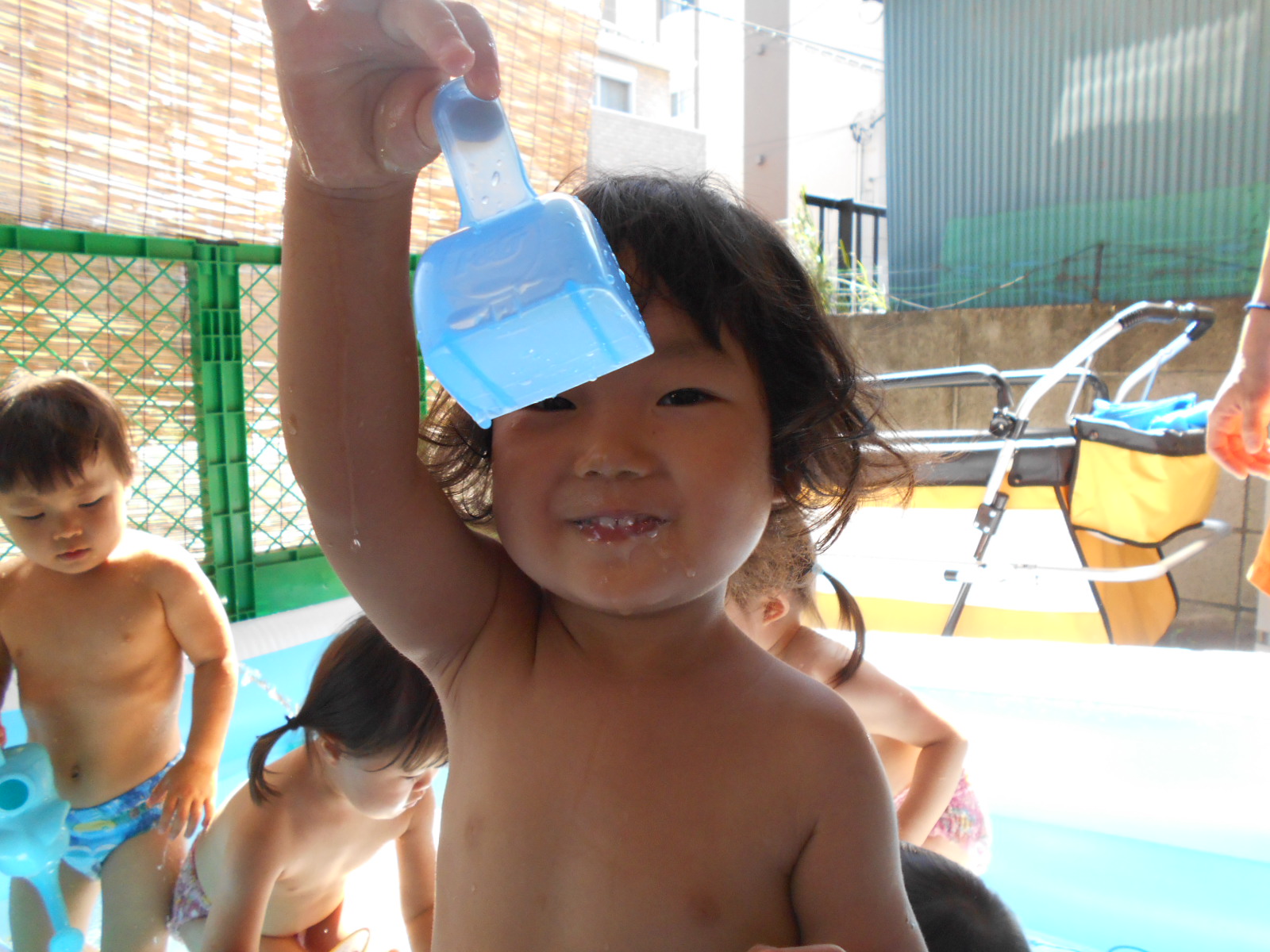 すっかりプール遊びにも慣れたみんなですが、今年は梅雨明けが遅く、プール遊びが出来たのは数えるほど。
