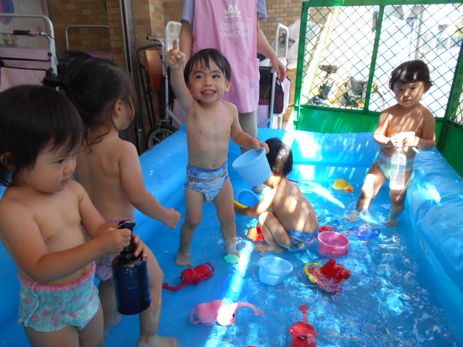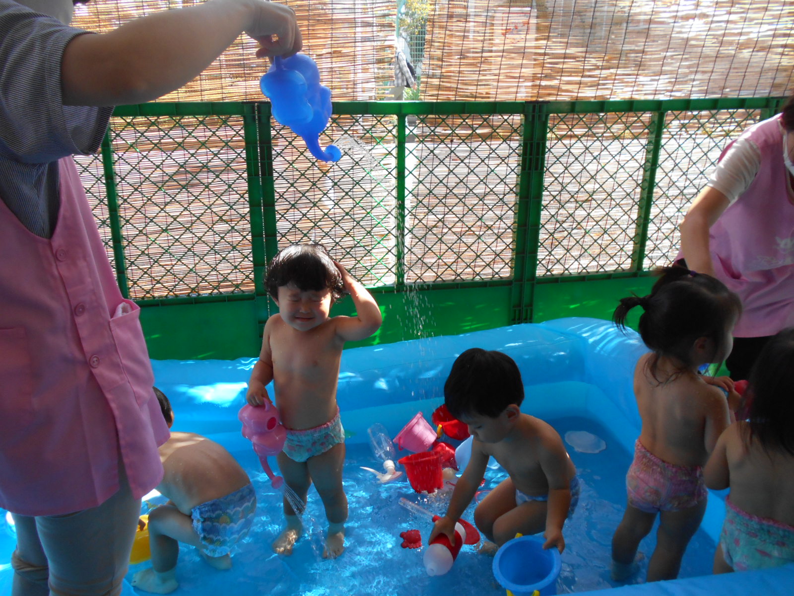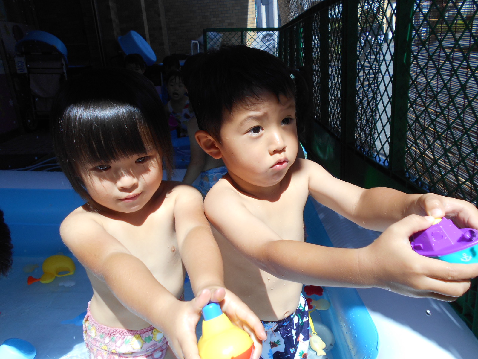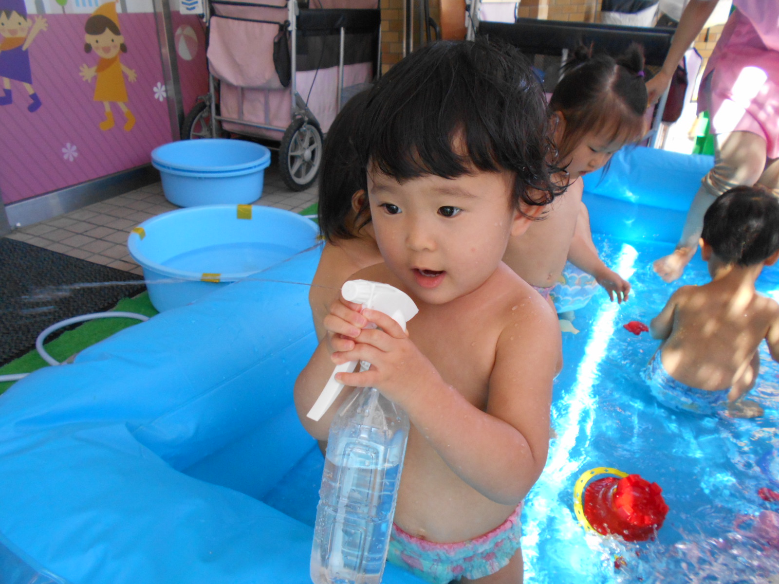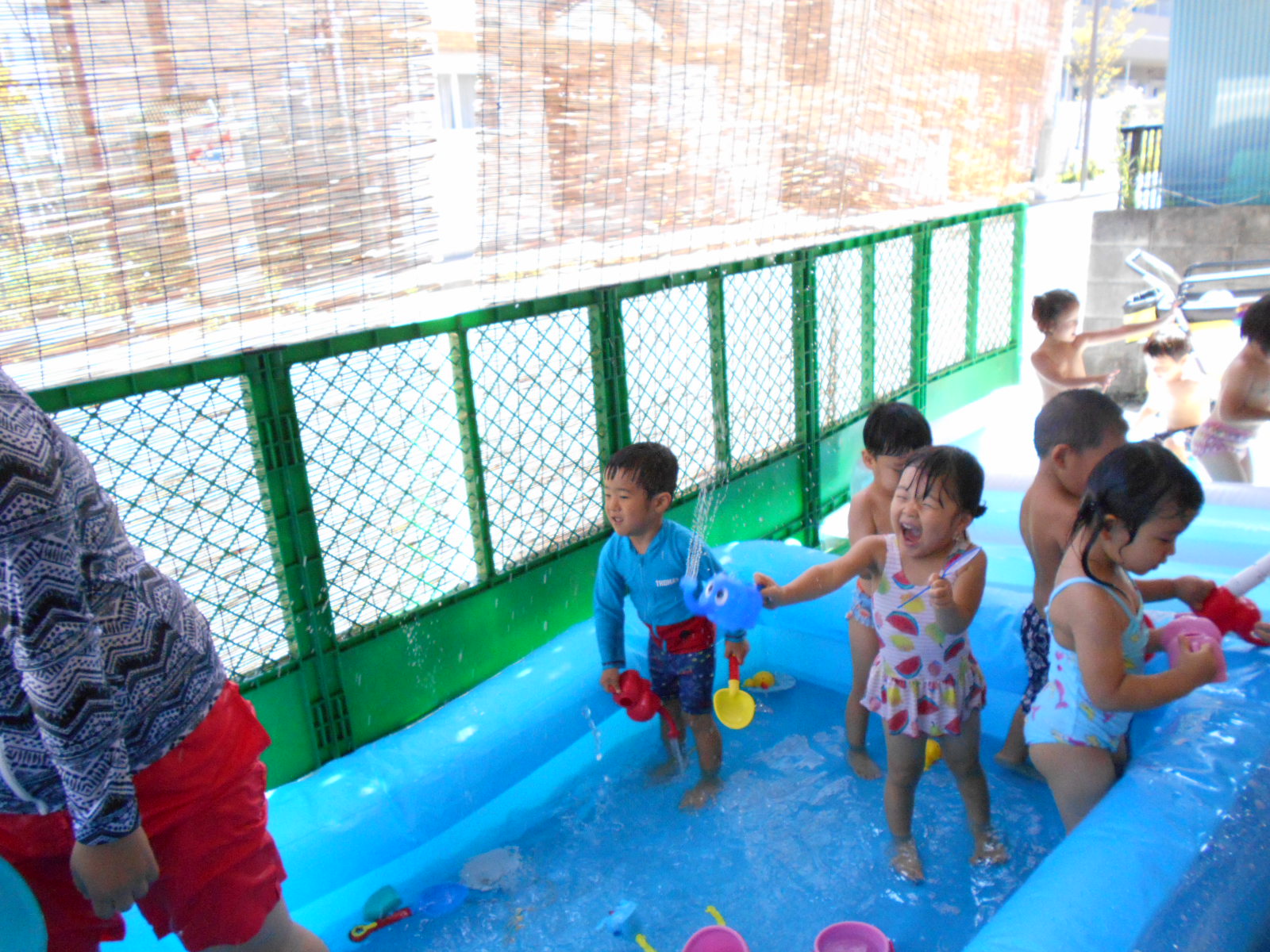 お部屋遊びや外遊びでは見れない、みんなの様子や表情が垣間見れたプール遊び。
