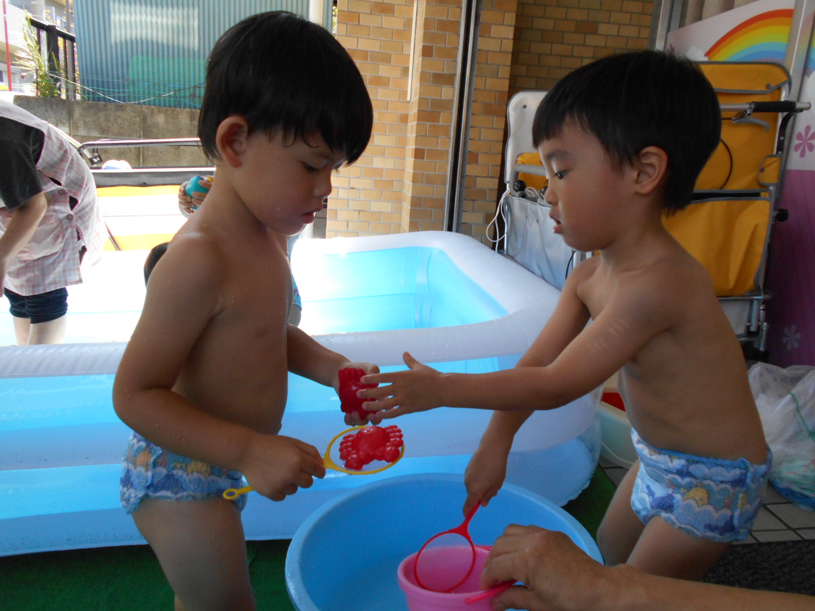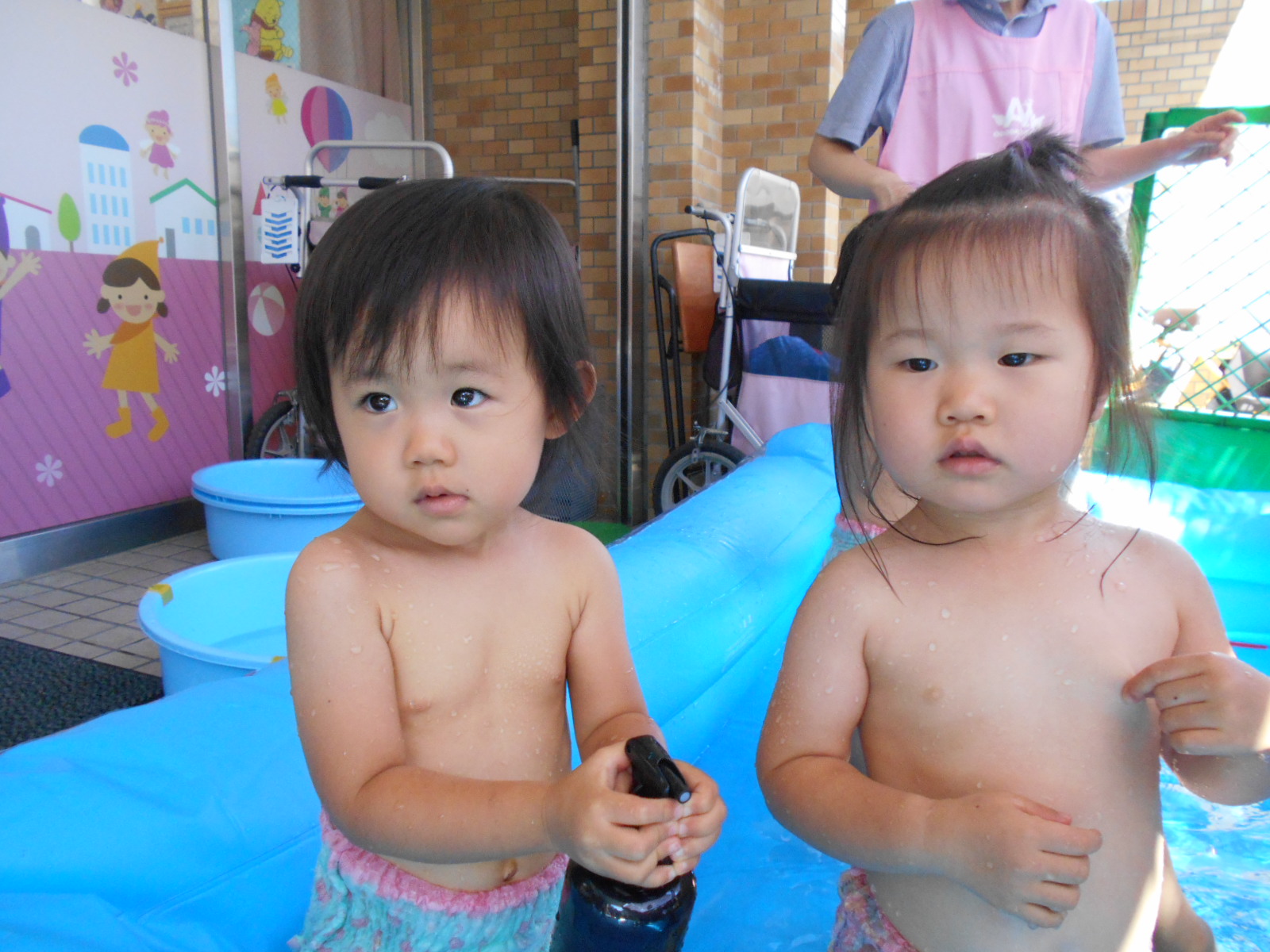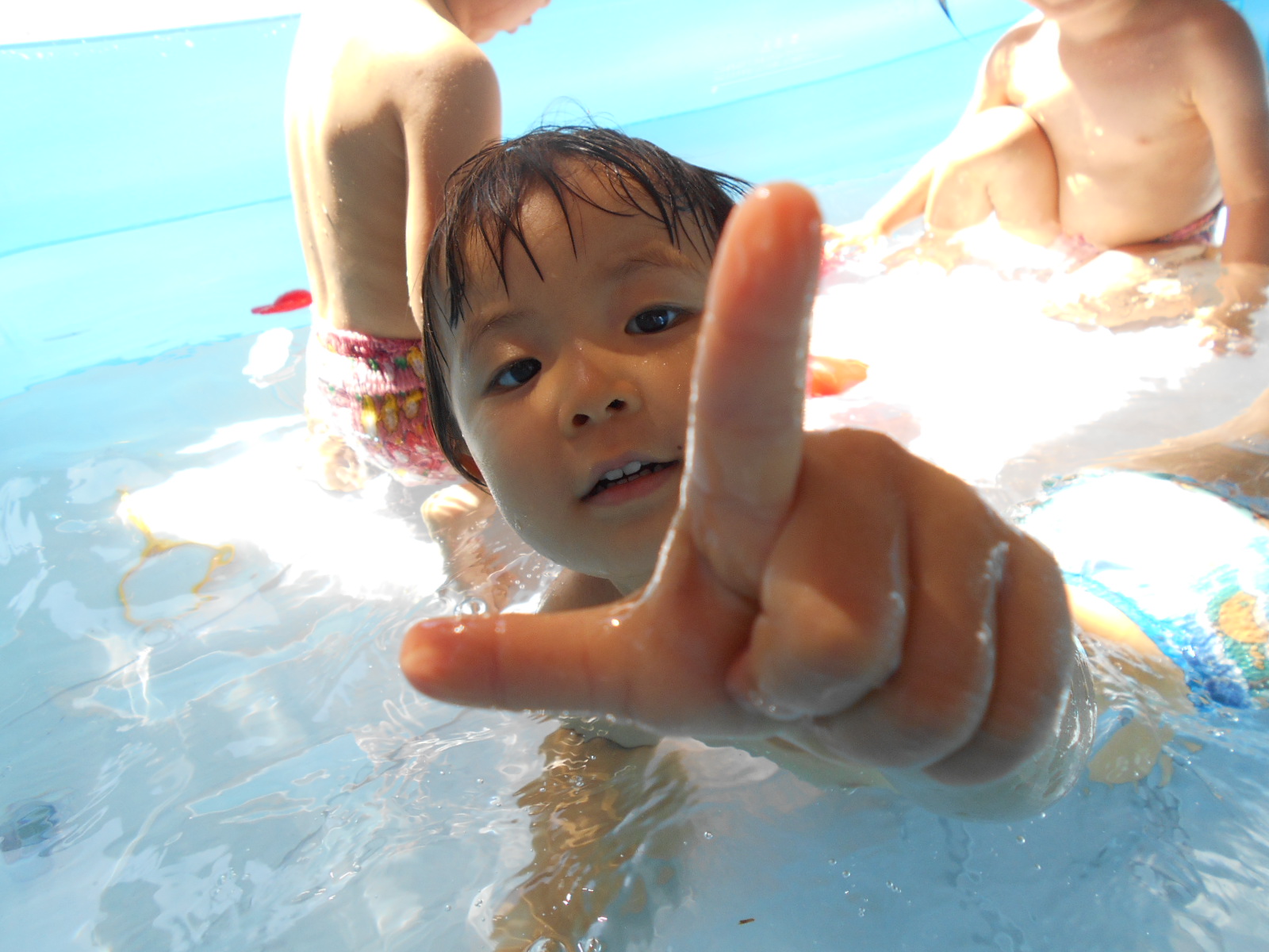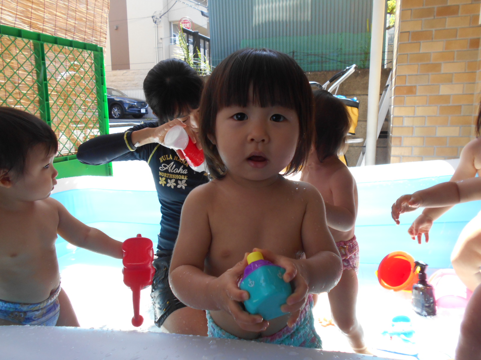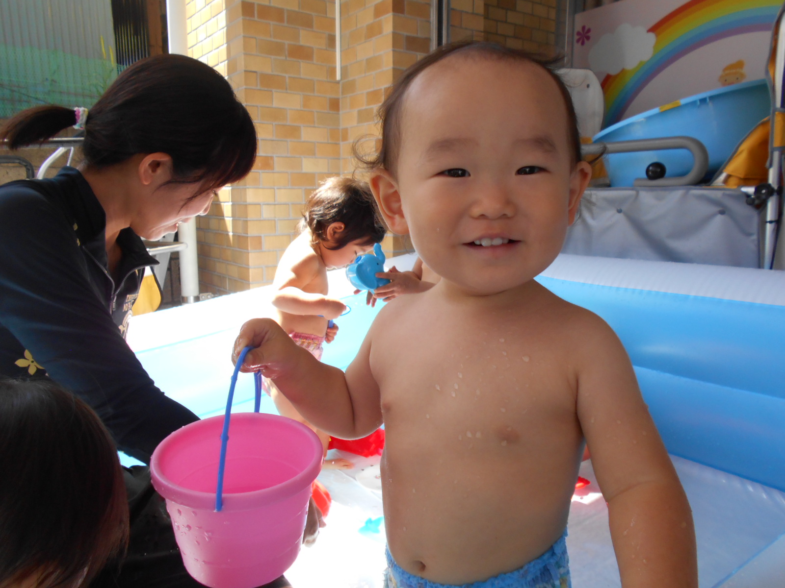 お部屋遊びや外遊びでは見れない、みんなの様子や表情が垣間見れたプール遊び。