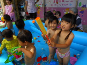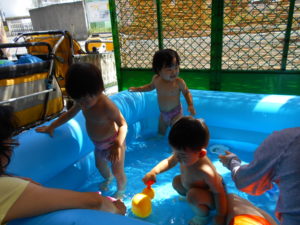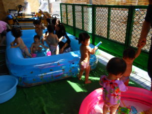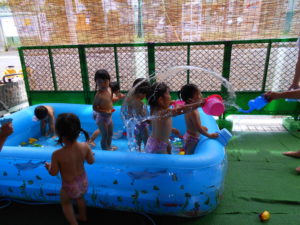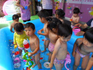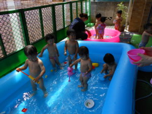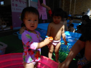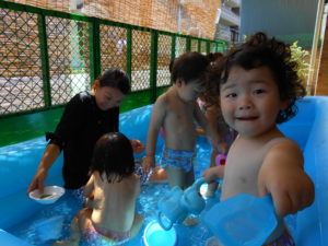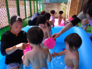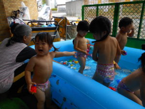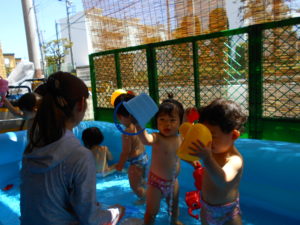 ひよこ組さんもお水で遊ぶことにどんどん慣れてきて、