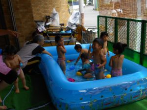 残りのパンダ組さんは、まみ先生&きりん組さんと一緒にプールです。