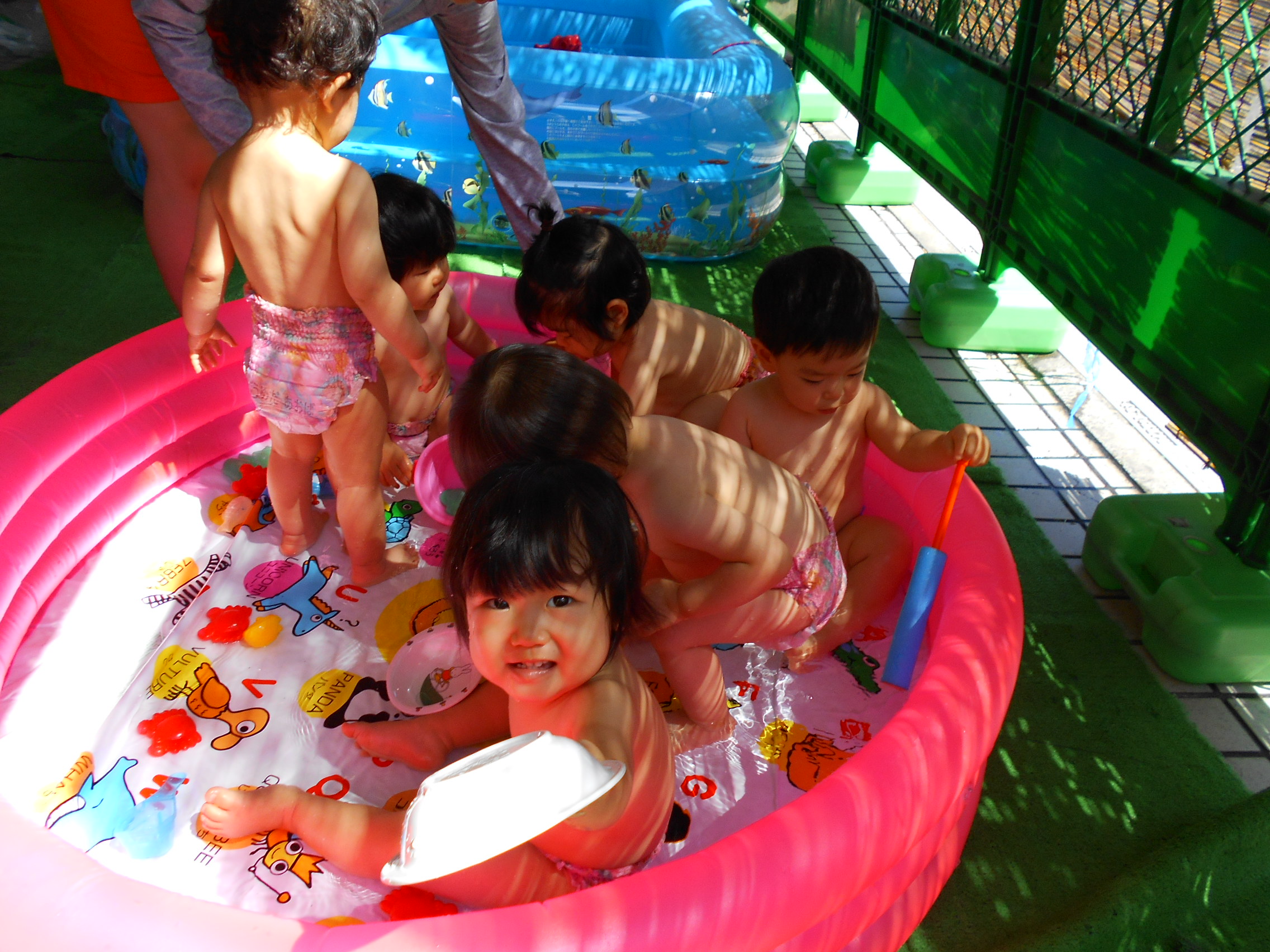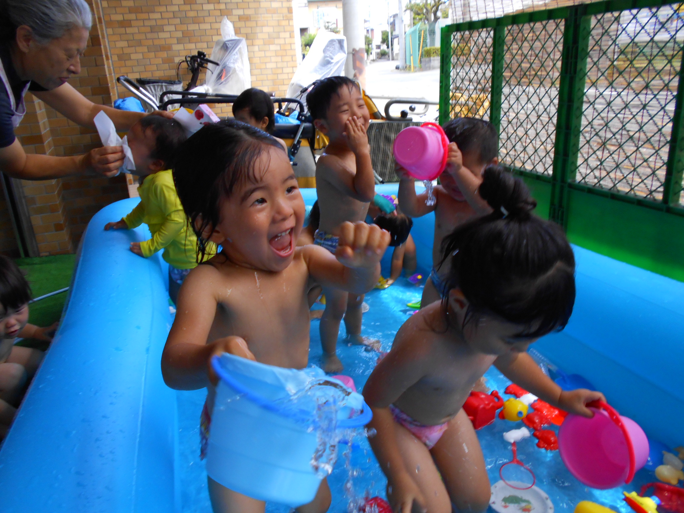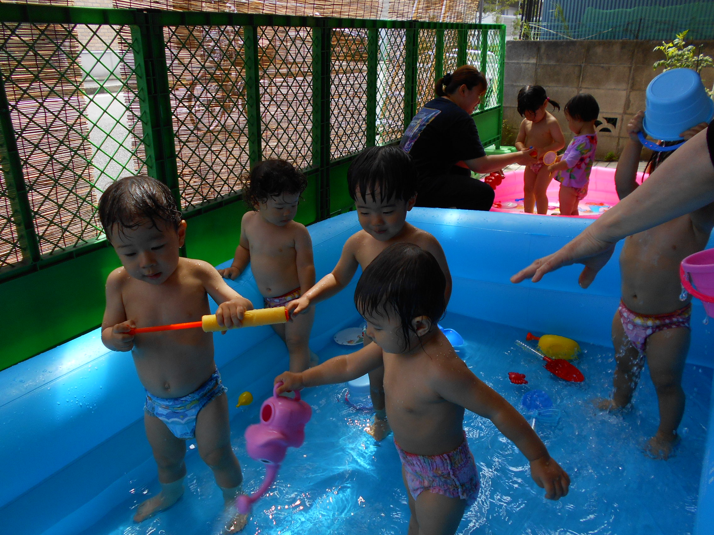ひよこ組さんもお水で遊ぶことにどんどん慣れてきて、