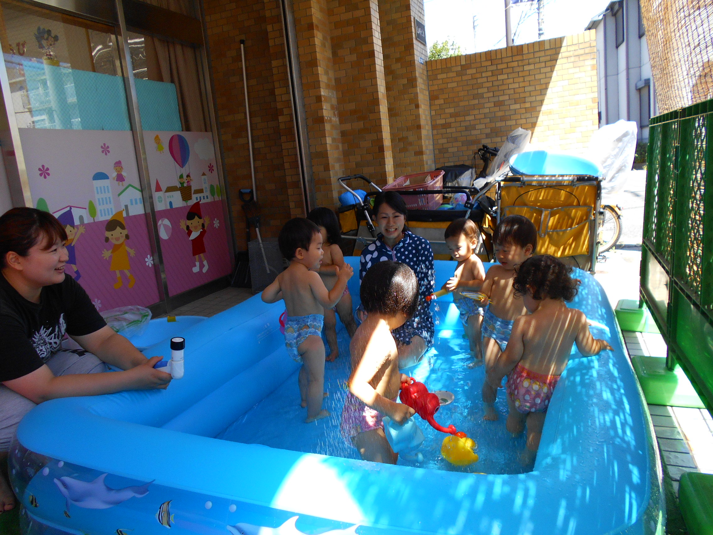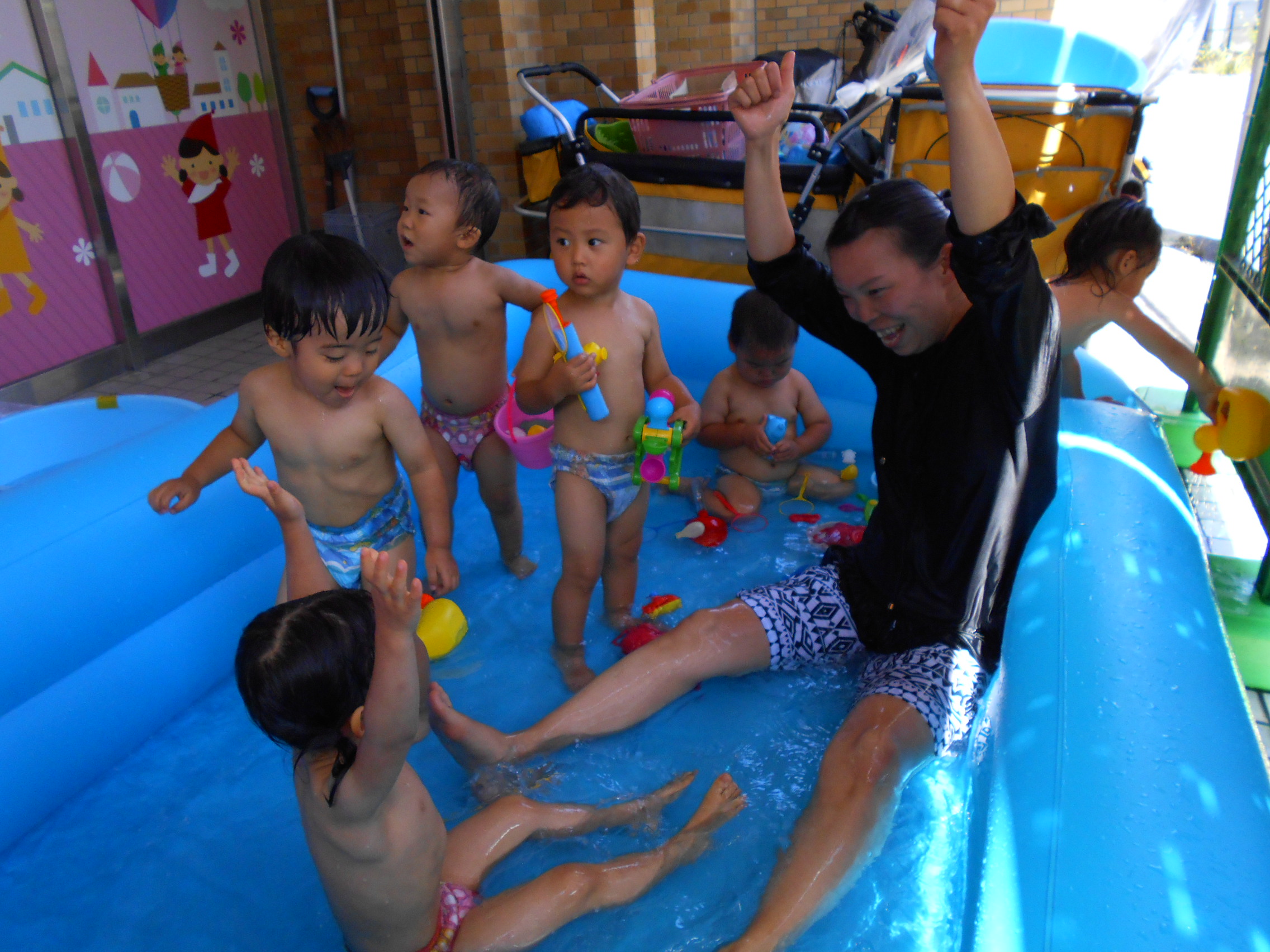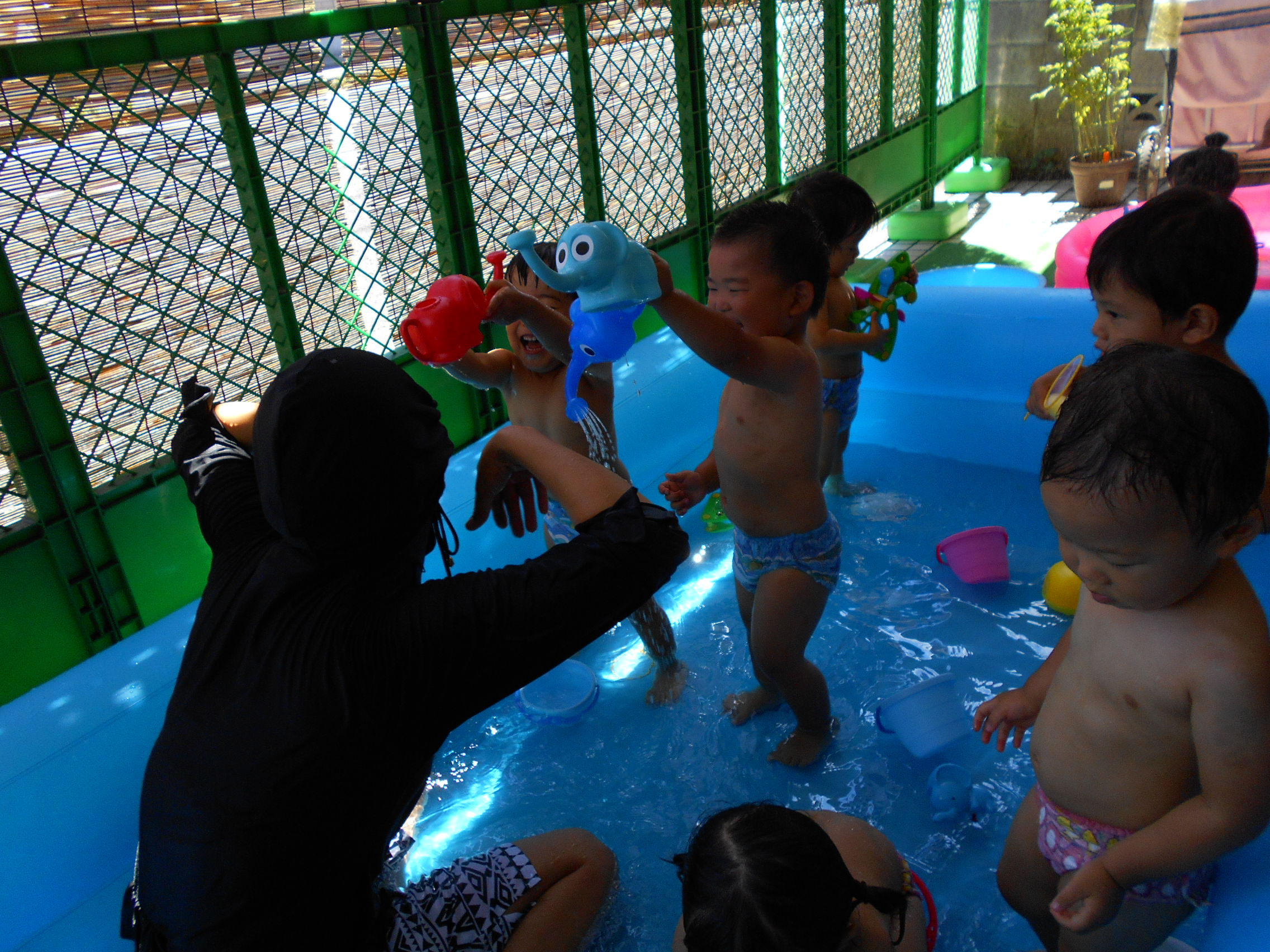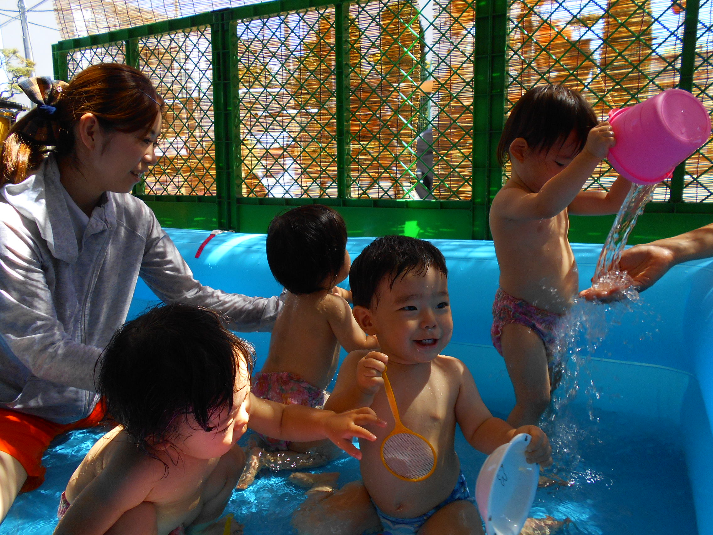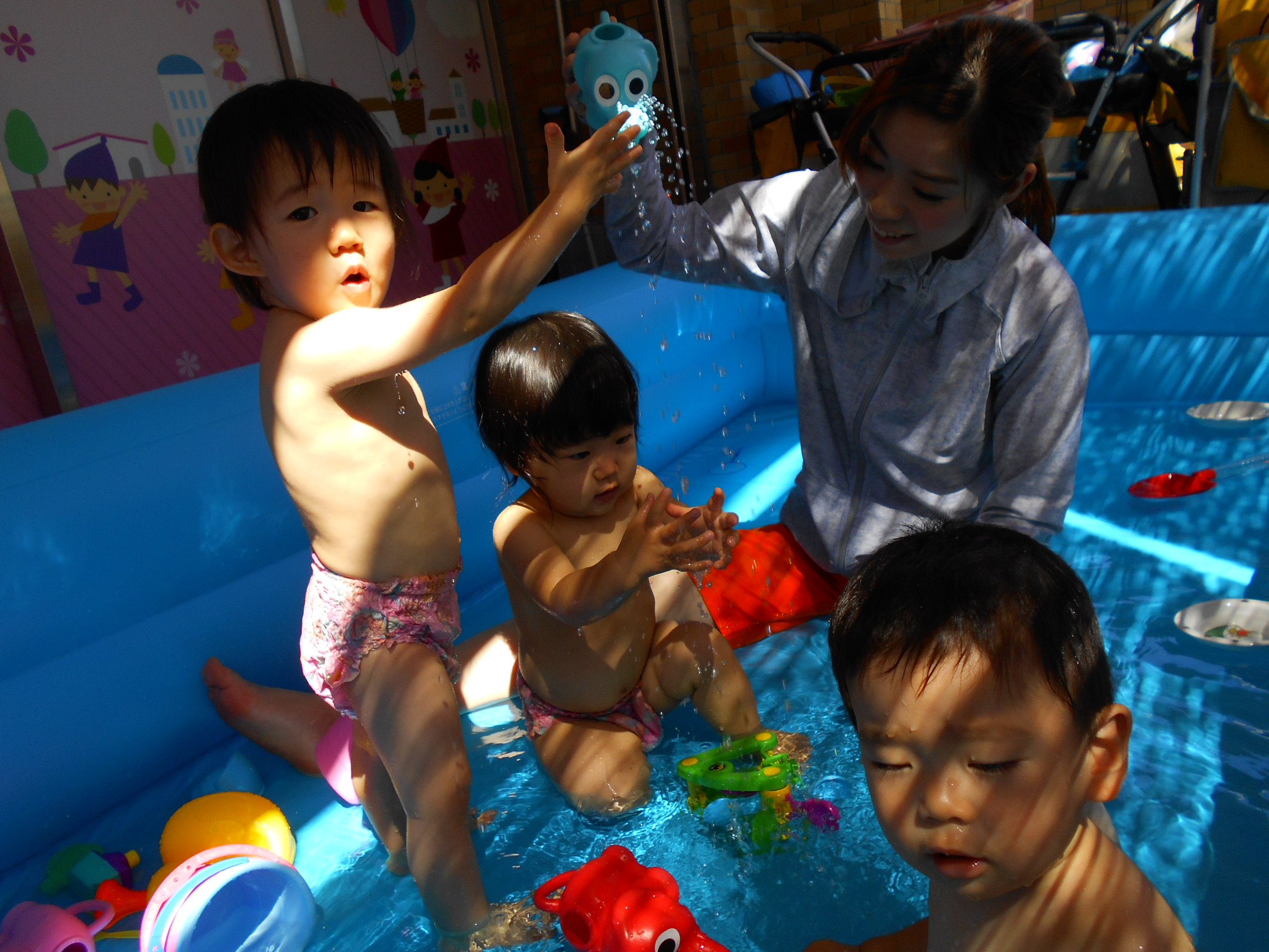 朝の会を終えると、いつものようにひよこ組さんからプール遊びスタート♬