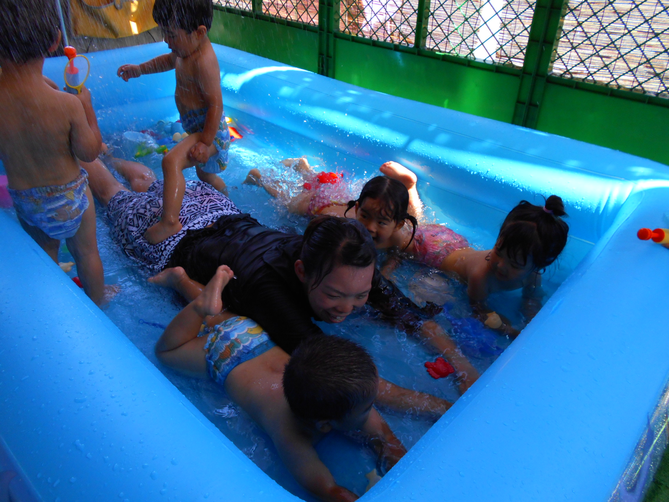 最後はまだまだ入っていたい~!と「駄々をこねる島津先生」をみんなでなだめて、プールから上がりました。笑