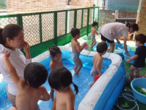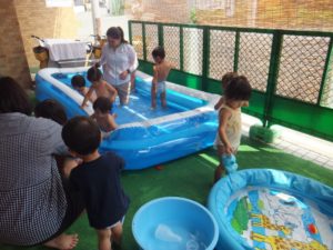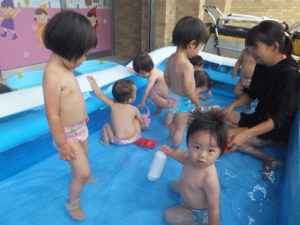 きりん組さん、お名前呼びは静かだったのに、プールになると大賑わい!笑