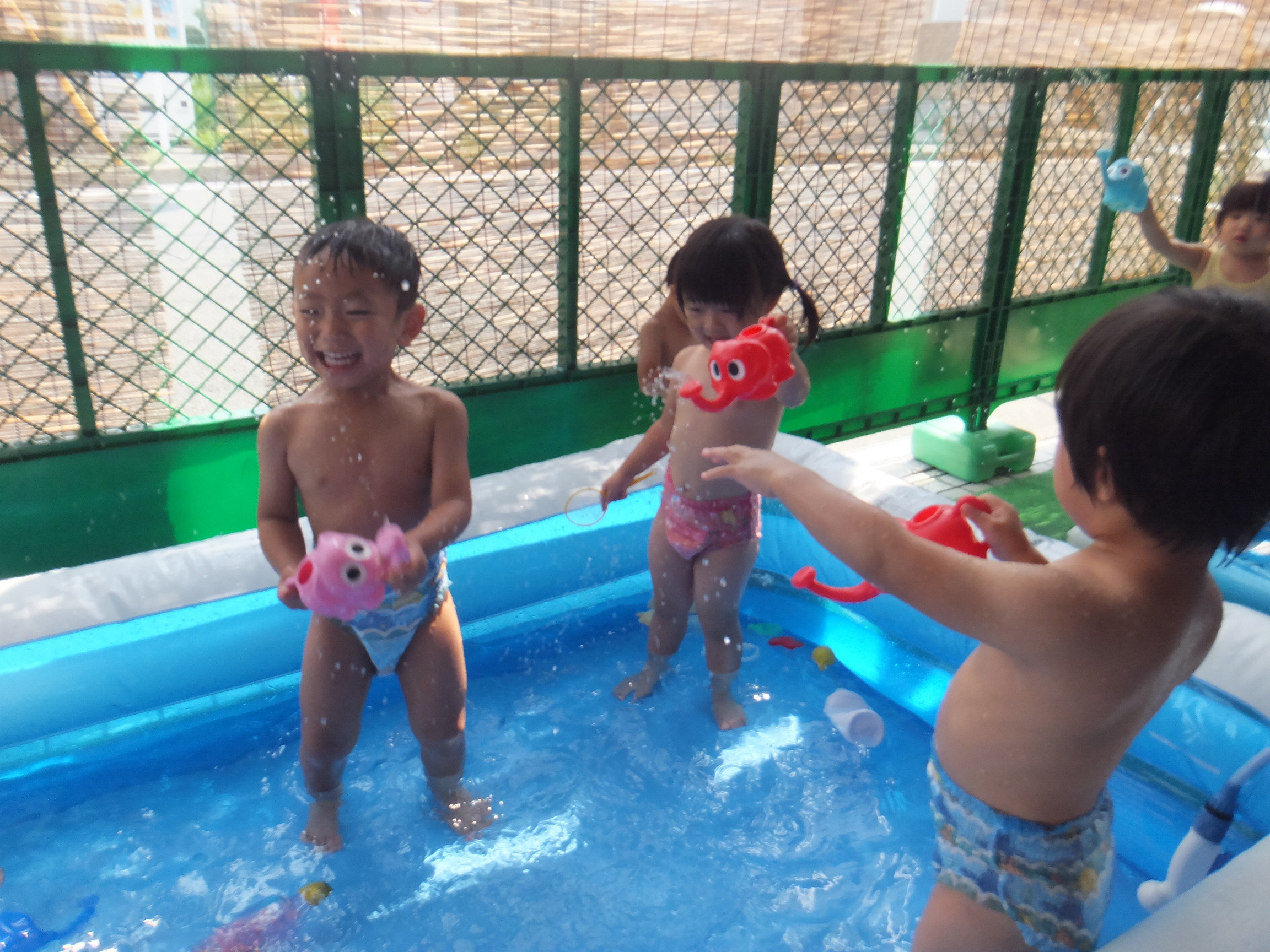 きりん組さん、お名前呼びは静かだったのに、プールになると大賑わい!笑