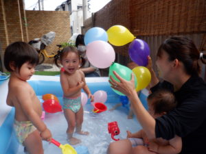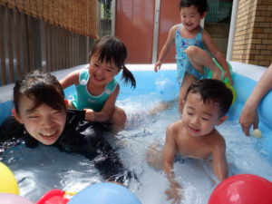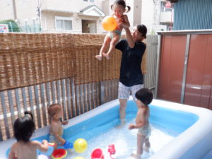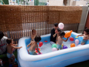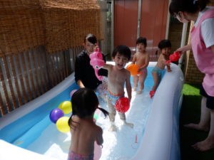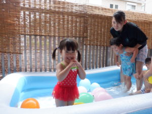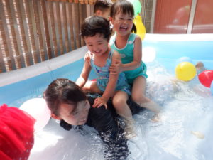 どっぷりつかって冷た気持ちいいプール遊び♩