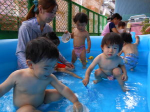 きりん組・ぱんだ組さんは豪快なプール遊び~!