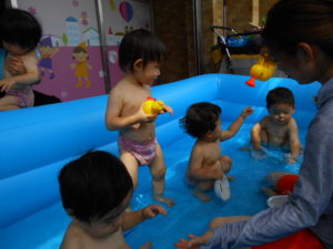 水遊びをしながらお水に慣れて、少しづづ楽しんでくれるといいなぁと思います☺