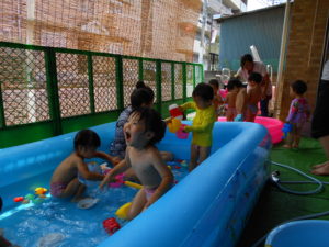 お誕生日会が終わってからは、お待ちかねのプール~!