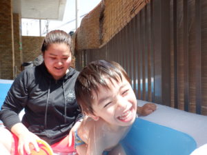 まみ先生の攻撃を受けない安全地帯はまみ先生の最も近くだと感じ取ったSちゃんでした(笑)